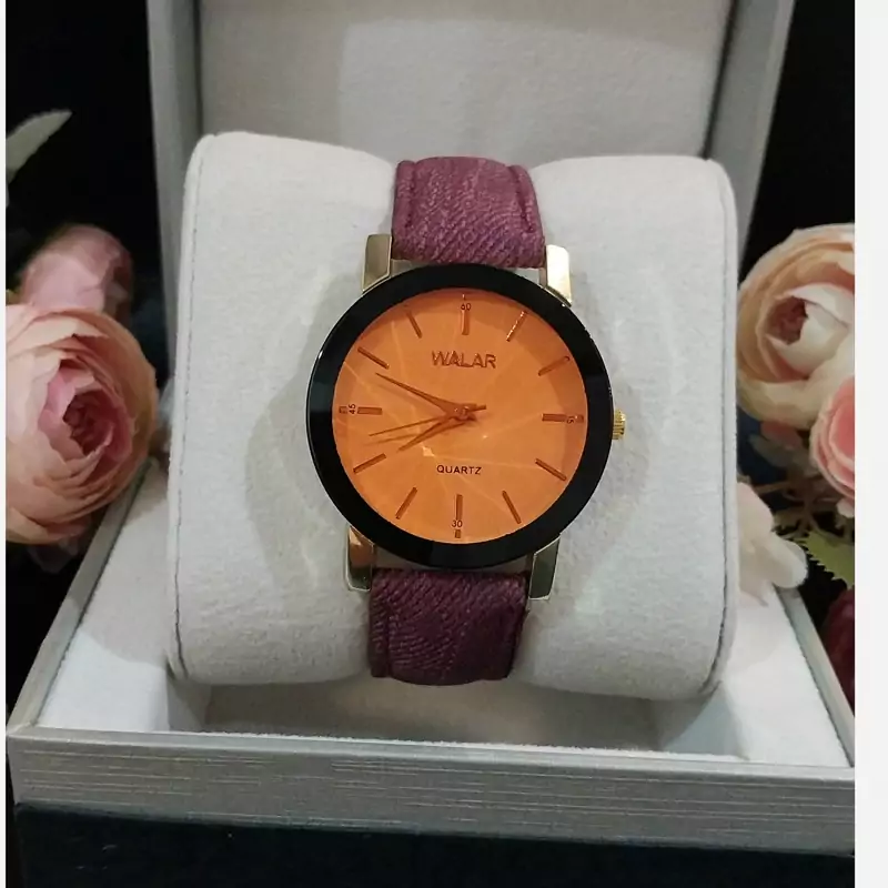 ساعت مجلسی اسپورت زنانه شیشه برجسته رنگی WALAR چرمی با کیفیت آجری رنگ