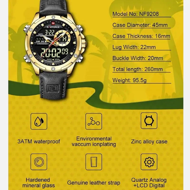 ساعت مچی دوزمانه مردانه نیوی فورس NF9208 NAVIFORCEبی نظیر اورجینال