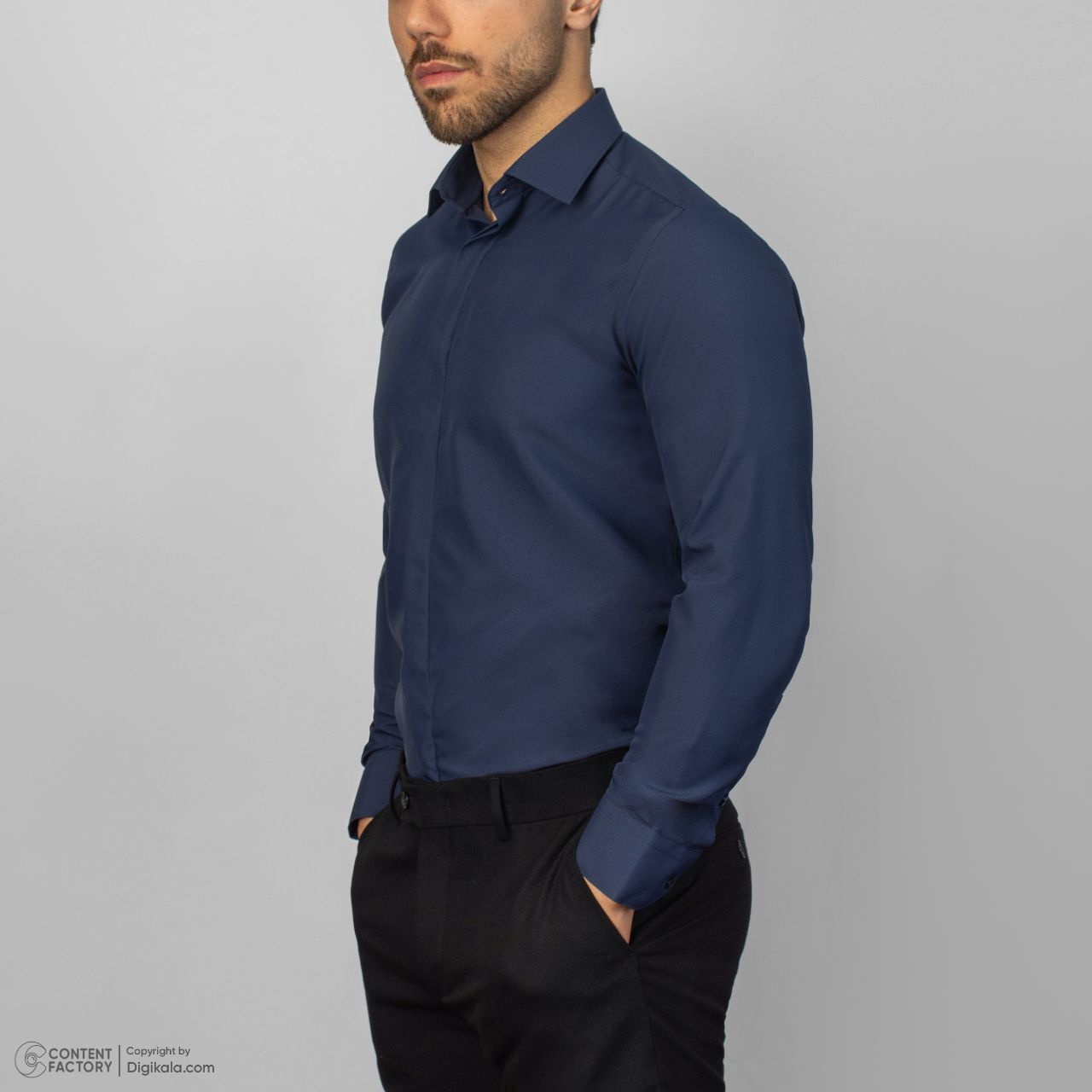 پیراهن سرمه ای تیره (بلو بلک) ضد چروک مناسب مکان های رسمی مجلسی و روزمره قابل استفاده میباشد کیفیت بالای محصول باعث شده تا در شستشوی متوالی سایز و رنگ آن به صورت ثابت بماند.جنس استفاده شده در تولید این پیراهن از مرغوب ترین پارچه های کرپ دوشین بوده تا احساس راحتی هر چه تمام تر را برای استفاده در طولانی مدت برای مصرف کننده به همراه داشته باشد. این پیراهن در 4 چهار سایز مختلف دوخت تمام صنعتی اسلیم (فیت) برای همه سنین قابل استفاده میباشد مدل کار بدون جیب و دکمه مخفی میباشد