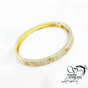 دستبند النگویی بنگل فول نگین طرح طلا کد 18315
