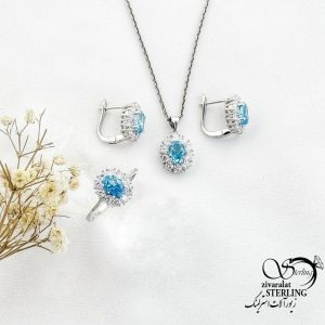 سرویس نقره سنگ آیس کات آبی عیار925 کد 17809