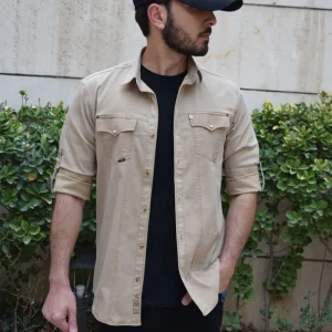 پیراهن مردانه کتان کش پایتی جامه کرم نخودی