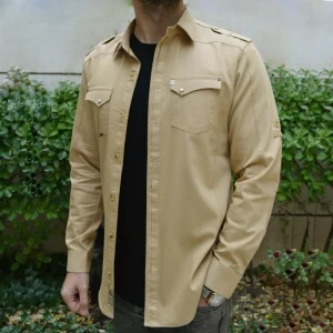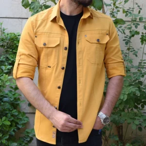 پیراهن مردانه پایتی جامه کتان خردلی مایل به زرد