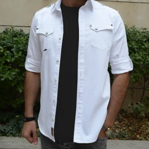 پیراهن مردانه کتان کش پایتی جامه سفید