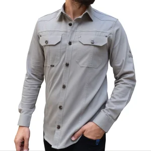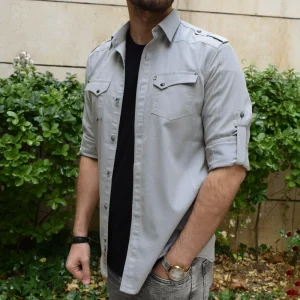 پیراهن مردانه کتان کش پایتی جامه طوسی مات