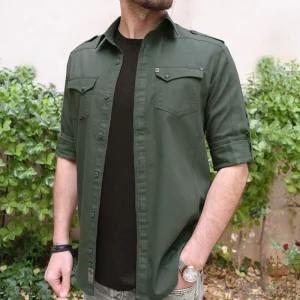 پیراهن مردانه کتان کش پایتی جامه سبز تیزه
