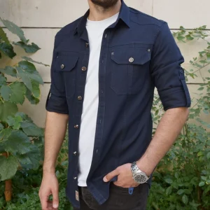 پیراهن مردانه کتان کش پایتی جامه سرمه ای سیر